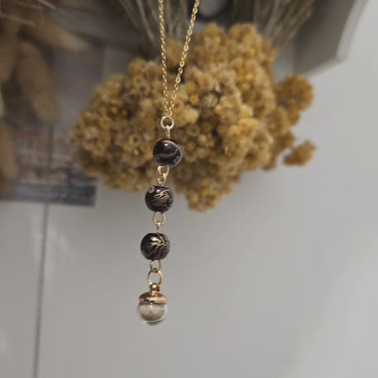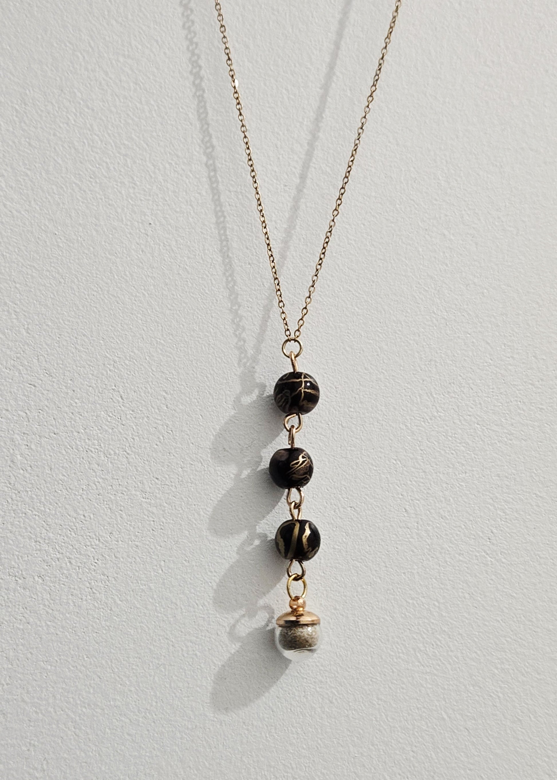 - Collier enchanteurs, surmontés d'une perle de souhait en verre soufflé remplie de vrai sable de plage.