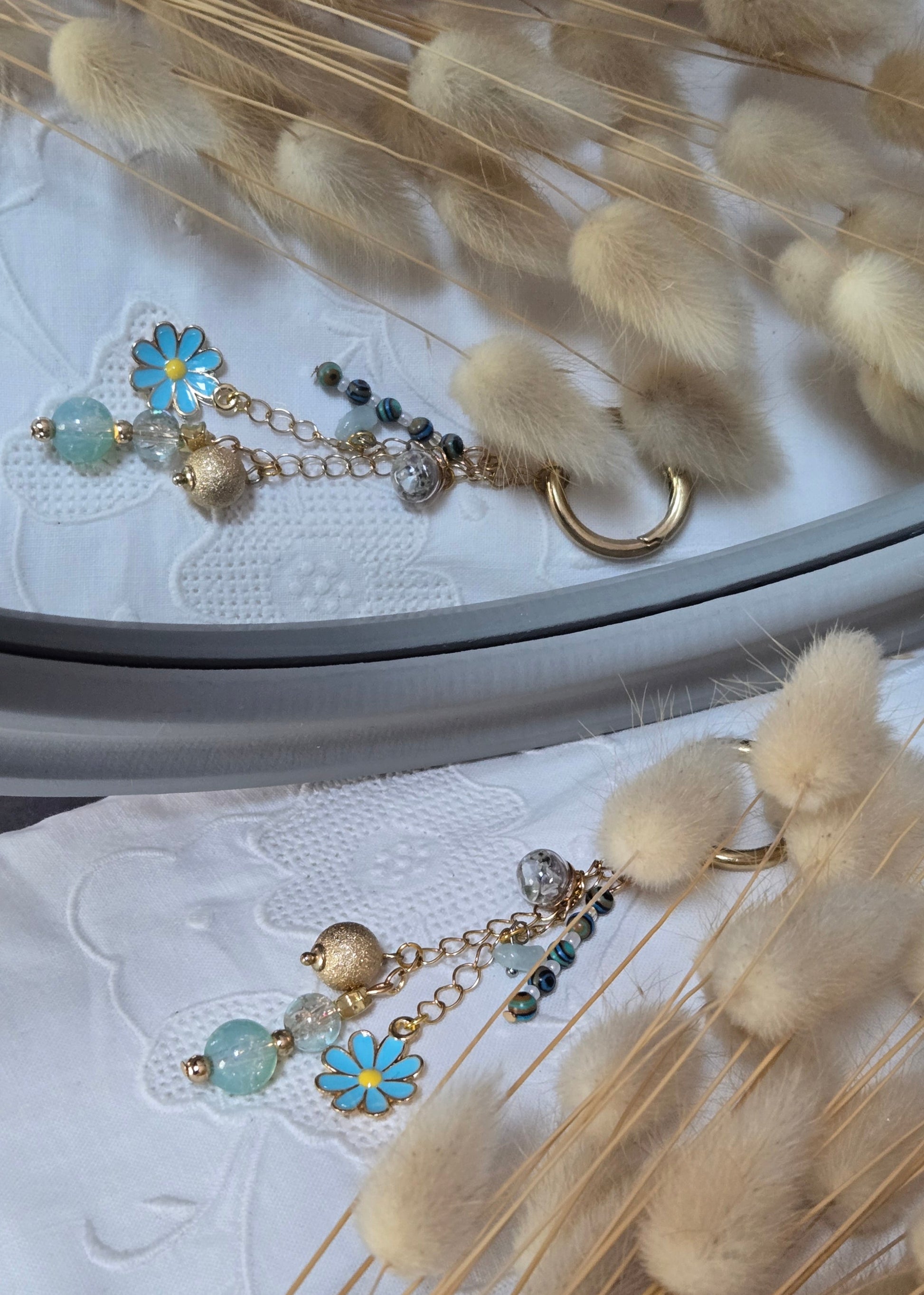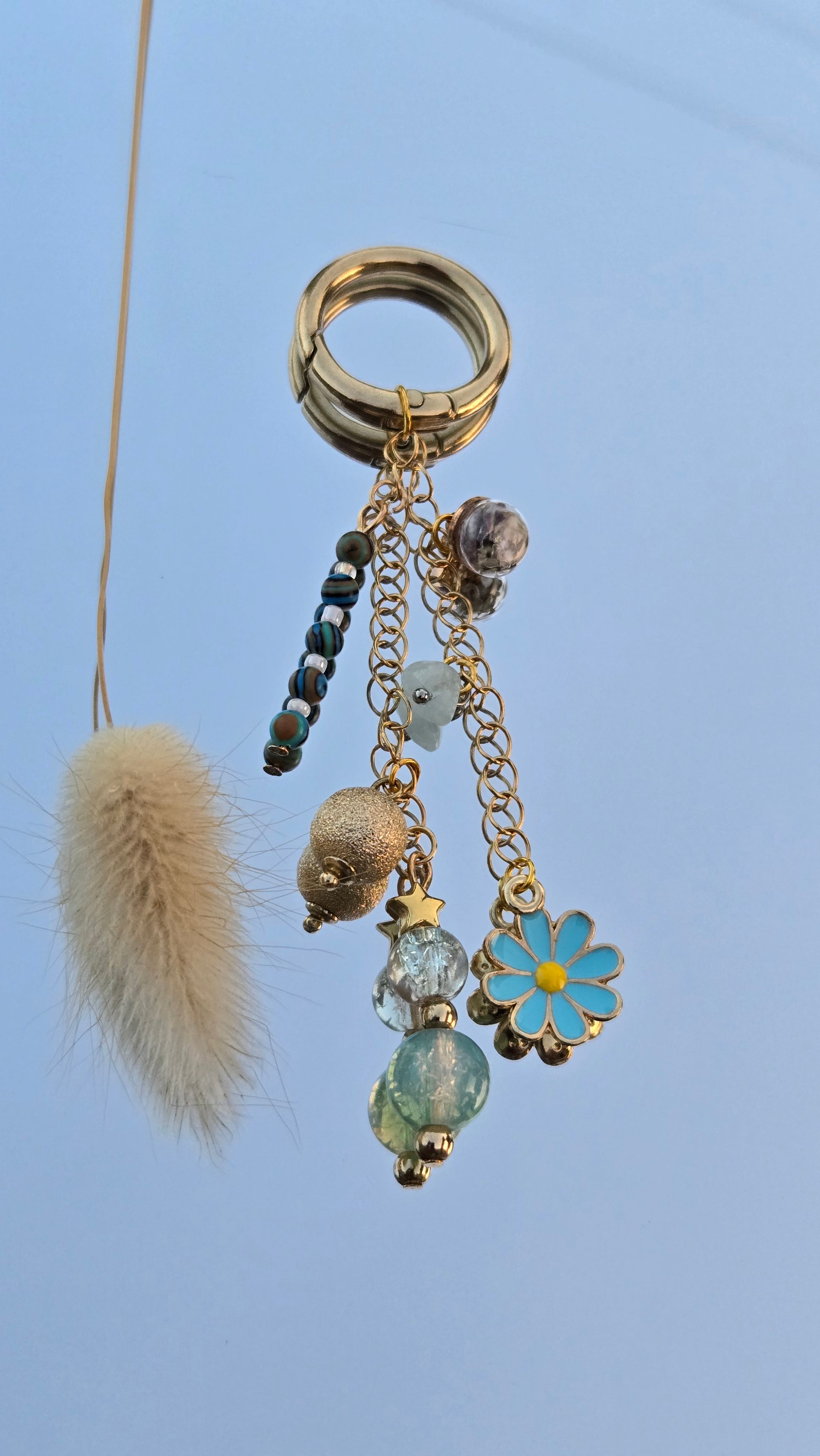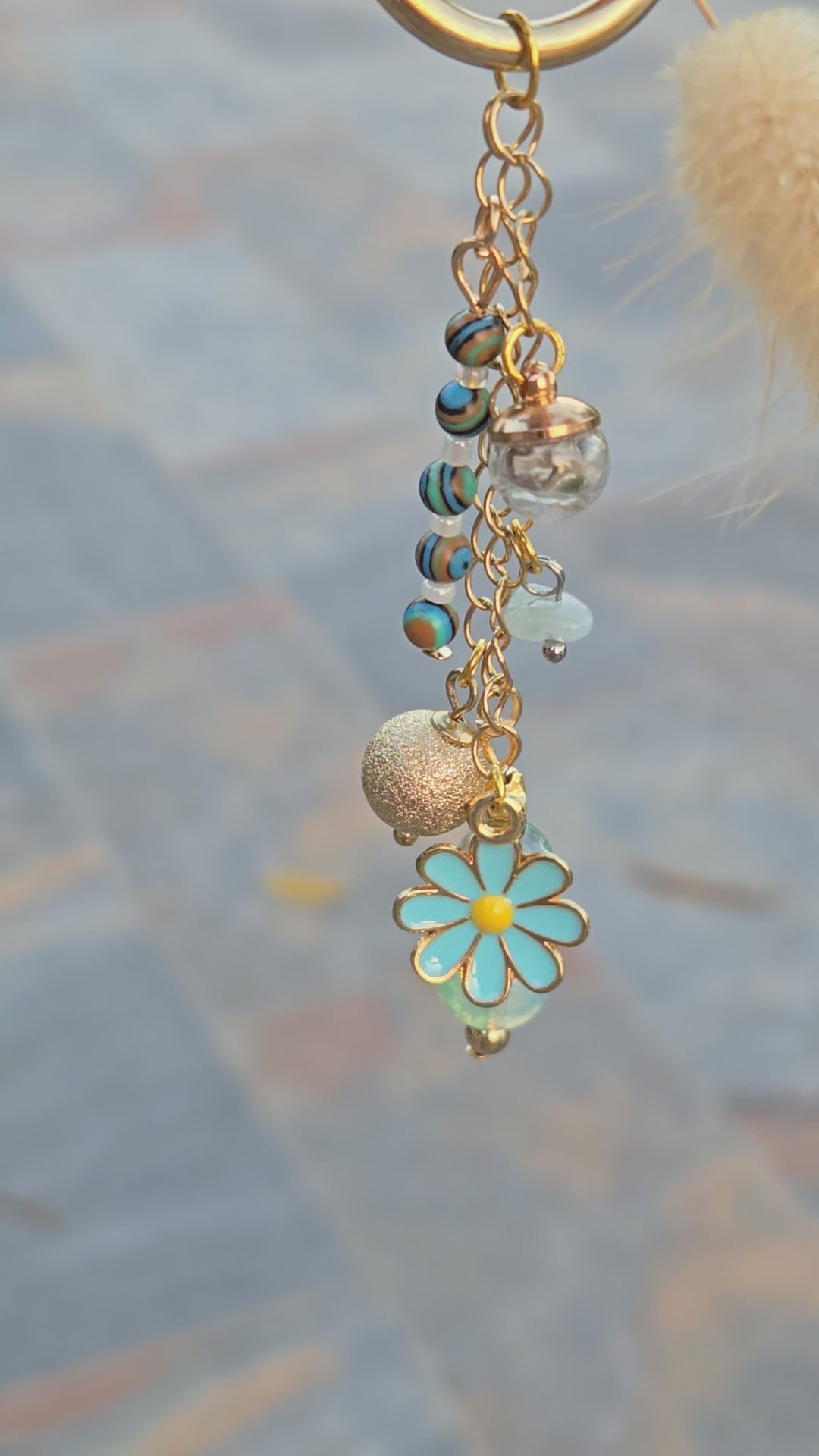 - Porte-bonheur surmonté de jolies perles, d'une marguerite bleue