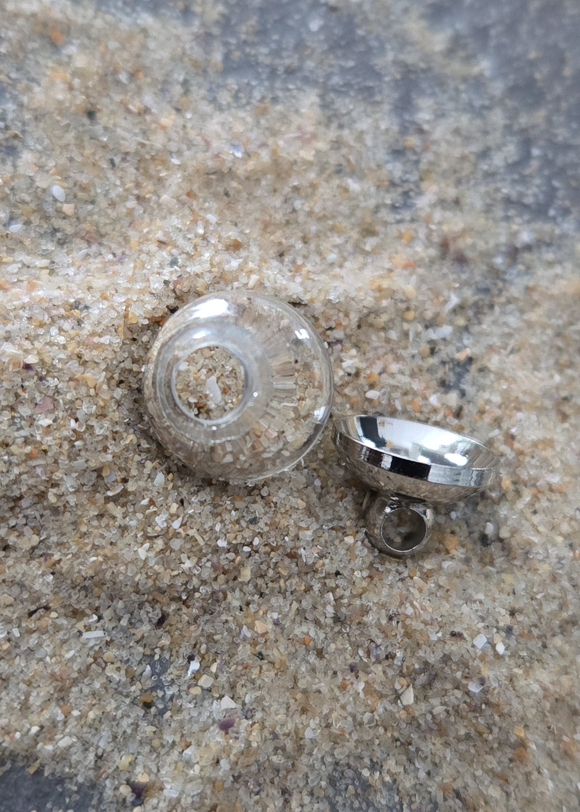 - Porte-souhait surmonté d'une perle en verre soufflé, remplie de vrai sable de plage,